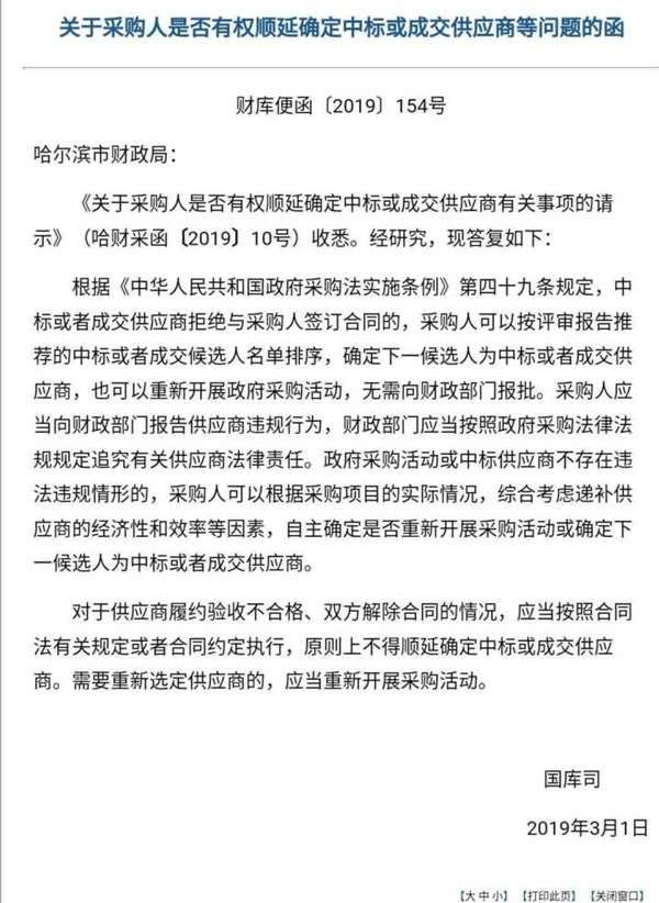 關(guān)于采購人是否有順延確定中標或成交供應(yīng)商商等問題函